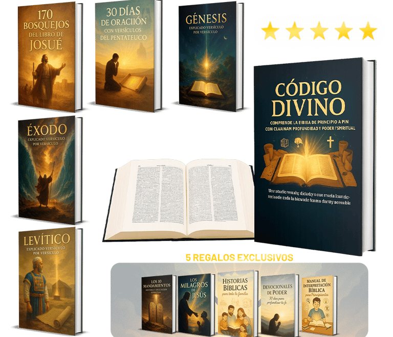 Al adquirir CÓDIGO DIVINO hoy, recibirás totalmente GRATIS estos 5 regalos exclusivos que complementarán tu estudio y crecimiento espiritual: